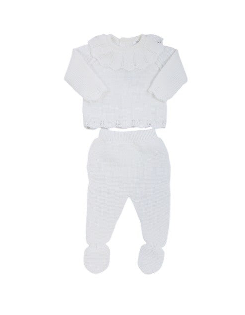 Zweiteiliger Playsuit aus Wollmischung mit Rüschenkragen und Haube
