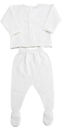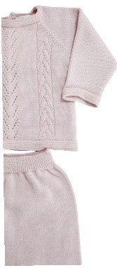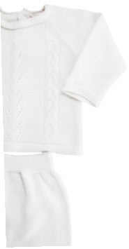 Zweiteiliger Strampler aus Wollmischung ohne Kragen, Rauten- und Zopfstickerei auf der Vorderseite mit Füßen