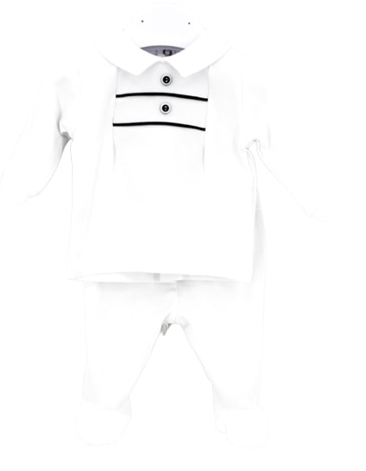Zweiteiliger Strampler von Teto und Tatta mit blauen Details.