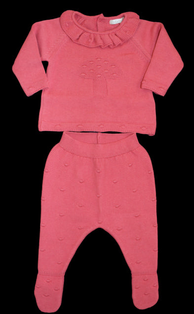 Doctor Kids 2-teiliger erdbeerfarbener Einteiler. Modell mit Ton-in-Ton geprägtem Pilz auf der Vorderseite.
