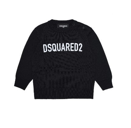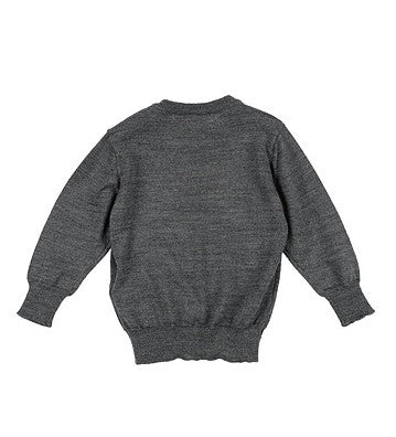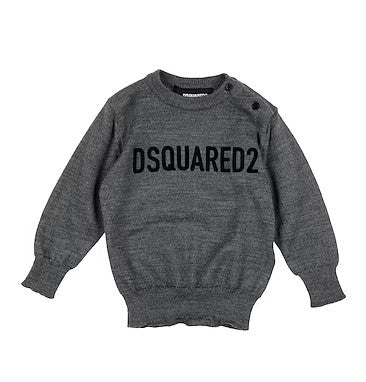 Pullover mit Rundhalsausschnitt, kontrastierendem Flocklogo auf der Vorderseite und Verschlussknöpfen an der Schulter.