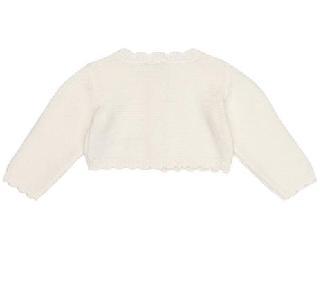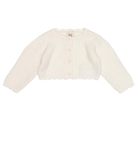 Strickjacke aus Baumwollgarn mit Rundhalsausschnitt, Knopfverschluss vorne und gewellten Abschlüssen.