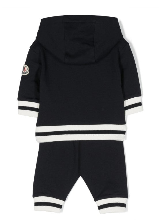 Zweiteiliges Set bestehend aus Kapuzenpullover, Logo auf der Vorderseite, Jogginghose mit elastischem Bund und Amerika-Tasche.