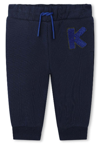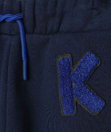 Joggerhose aus Baumwollfleece. Es verfügt über einen elastischen Bund mit Kordelzug, seitliche Leistentaschen, ein geprägtes Logo mit Schwammsticheffekt auf der Vorderseite, einen elastischen Knöchelbereich und ein gesticktes Logo auf der Rückseite.