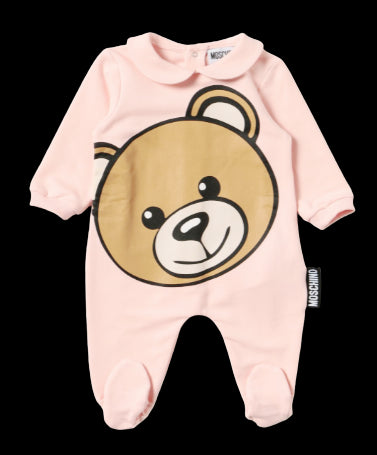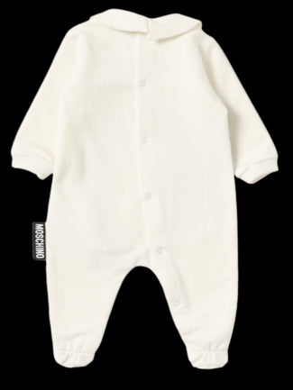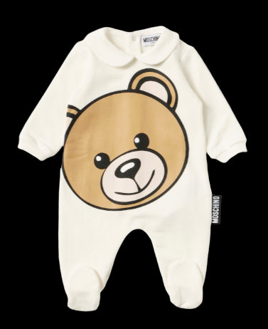Moschino-Einteiler mit Teddygesicht auf der Vorderseite.