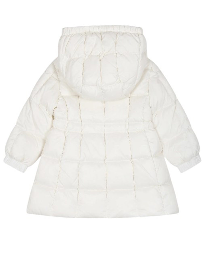 Ausgestellte Steppjacke mit fester Kapuze, Reißverschluss vorne, seitlichen Leistentaschen und Logo-Patch am Ärmel.