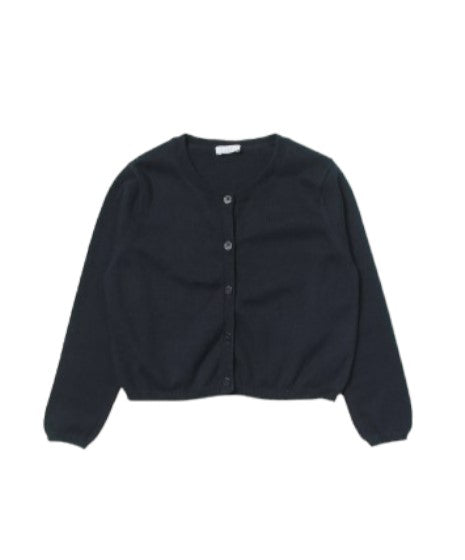 Strickjacke aus Baumwollgarn, Verschluss vorne mit Knöpfen.