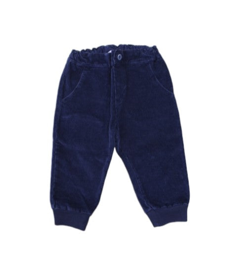 Samthose für Neugeborene, Knopfverschluss vorne, elastischer Bund, seitliche America-Taschen.