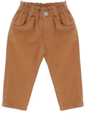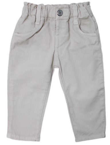 Hose aus elastischer Baumwolle, Modell mit fünf Taschen, elastischem Bund, Druckknopfverschluss, Applikation auf der Rückseite.