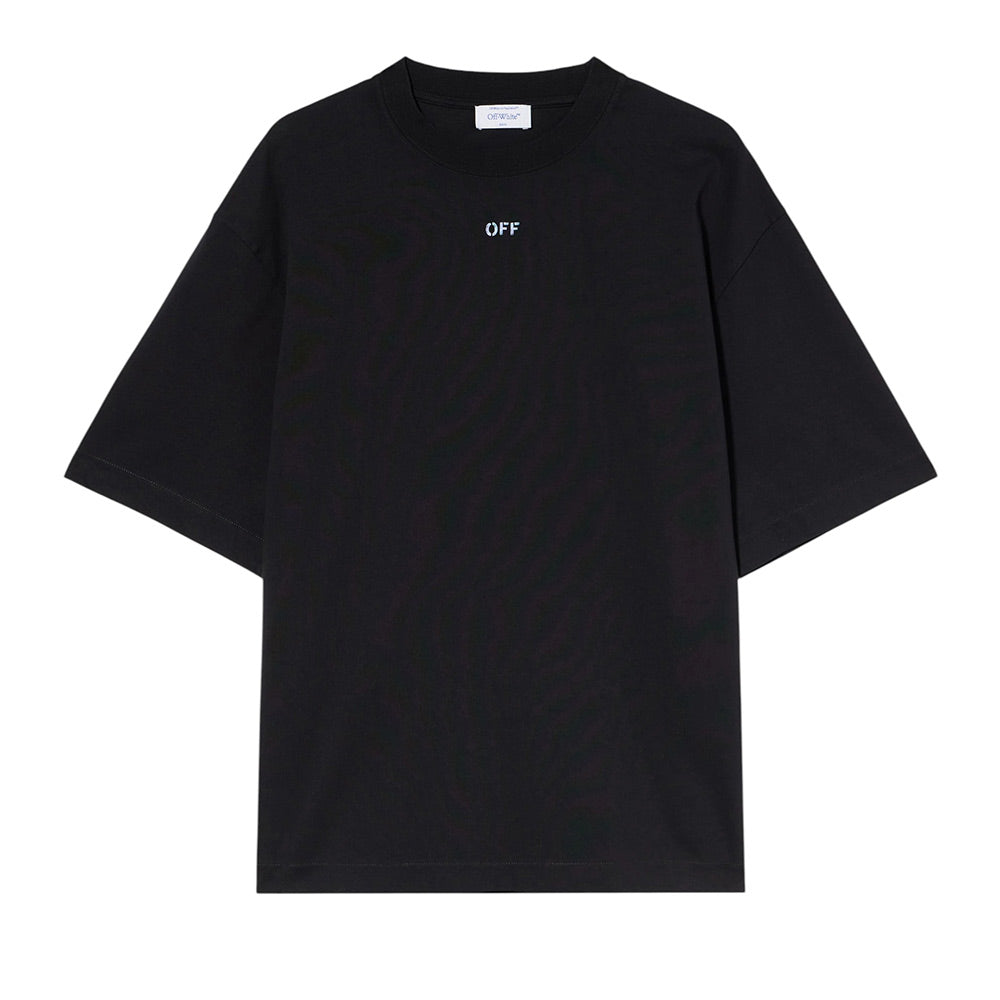 T-shirt relaxed fit realizzata in jersey di cotone, caratterizzata da collo rotondo a costine, maniche corte, spalle scese e orlo dritto. È decorata con stampa logo Off-White sul davanti e con motivo a freccia stencil sul retro.