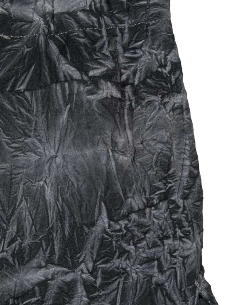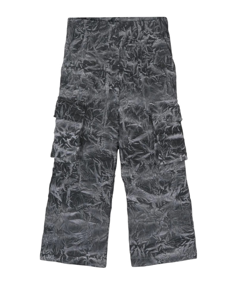 Pantaloni cargo grigi d bambina realizzati in poliestere effetto stropicciato. Presentano vita elasticizzata, gamba dritta, due tasche laterali all'americana e due tasche cargo ai lati.