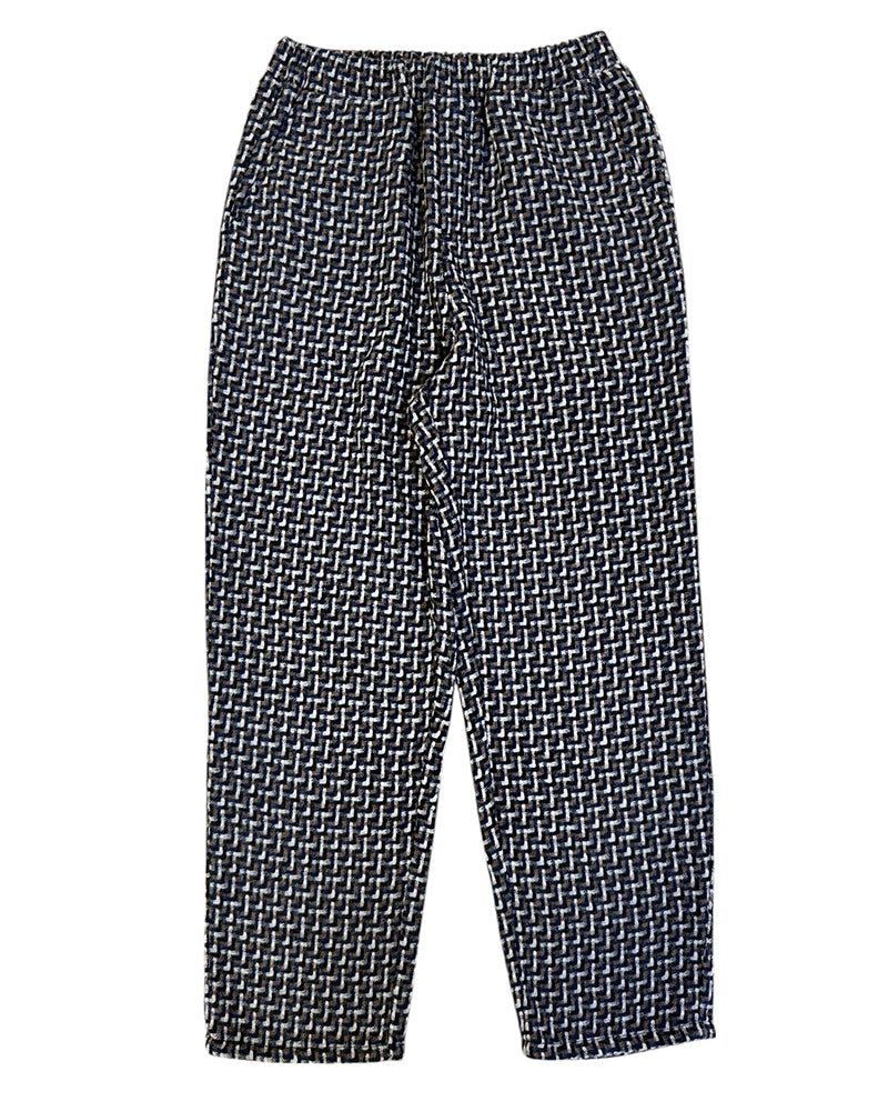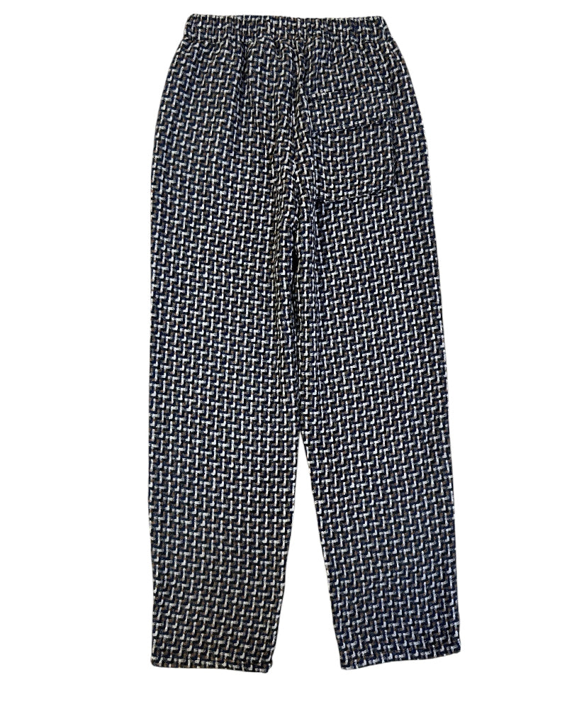 Pantaloni realizzati in misto lana da bambina. Presentano motivo geometrico, vita elasticizzata, tasche laterali all'americana e tasca con patta applicata sul retro.
