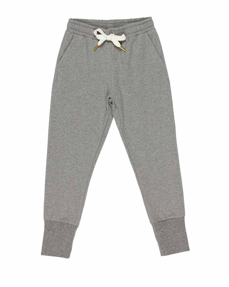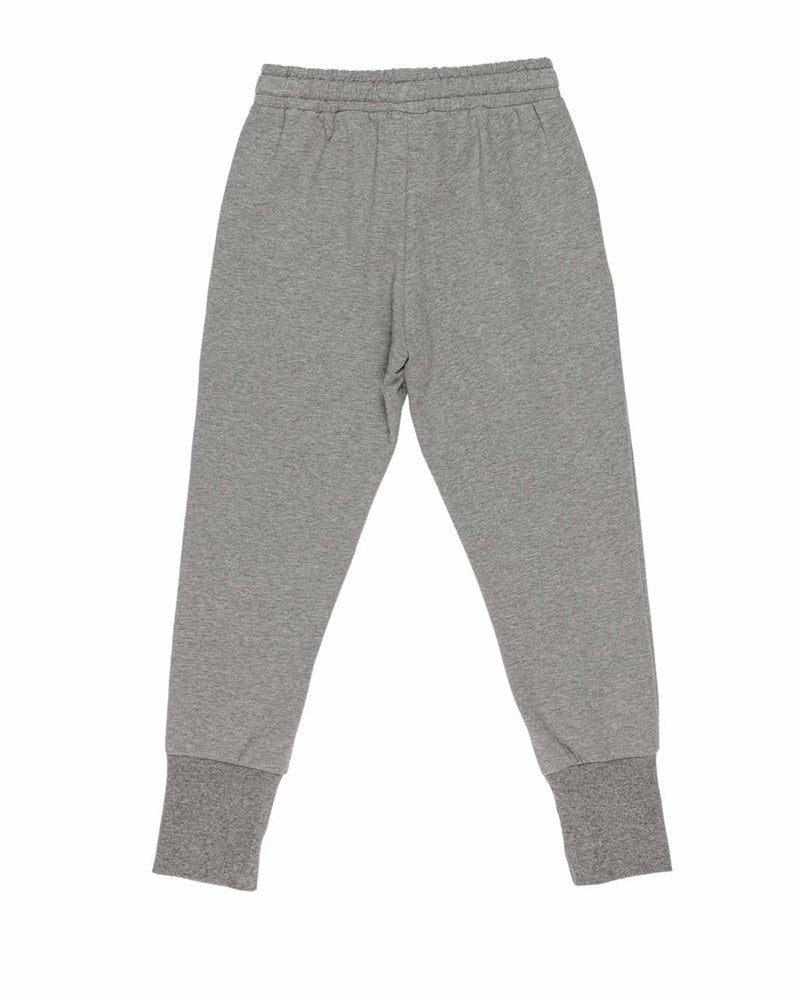 Pantaloni jogger grigi realizzati in cotone garzato da bambina. Presentano vita elasticizzata con coulisse, tasche laterali all'americana, fodera in pile e fondo a coste.