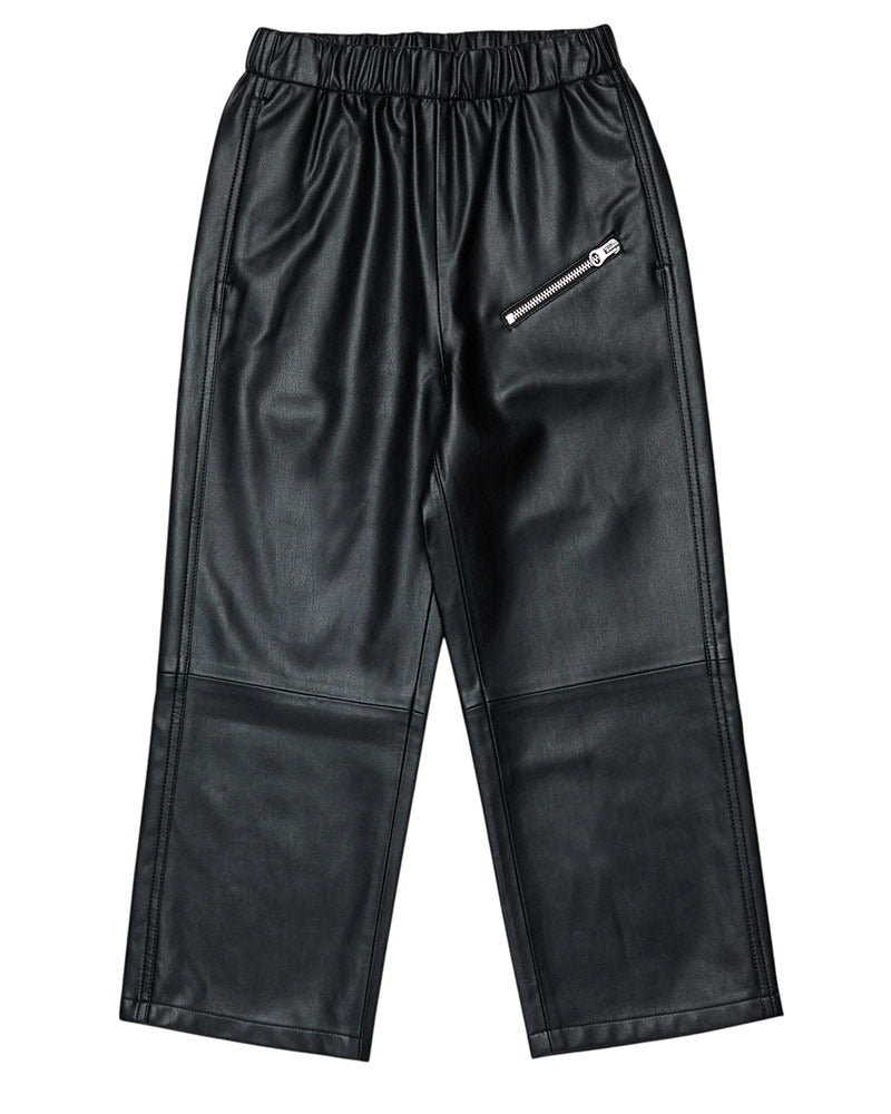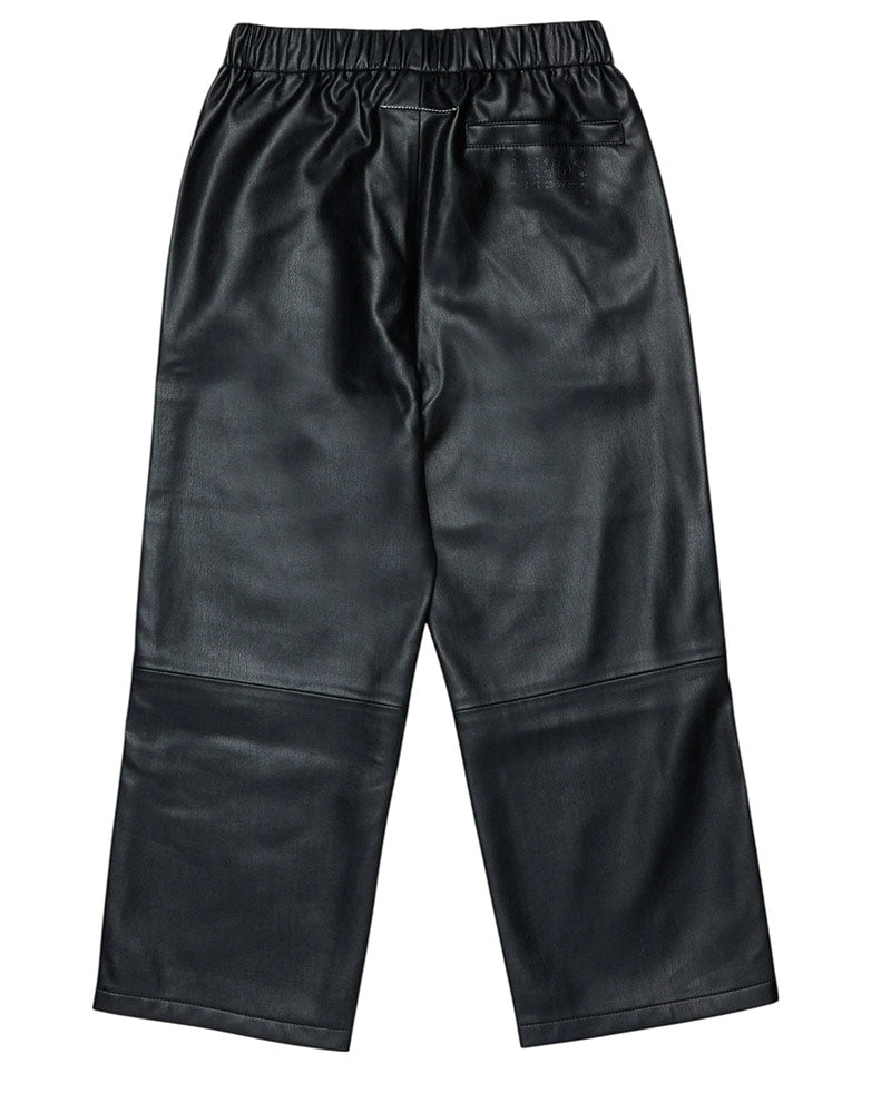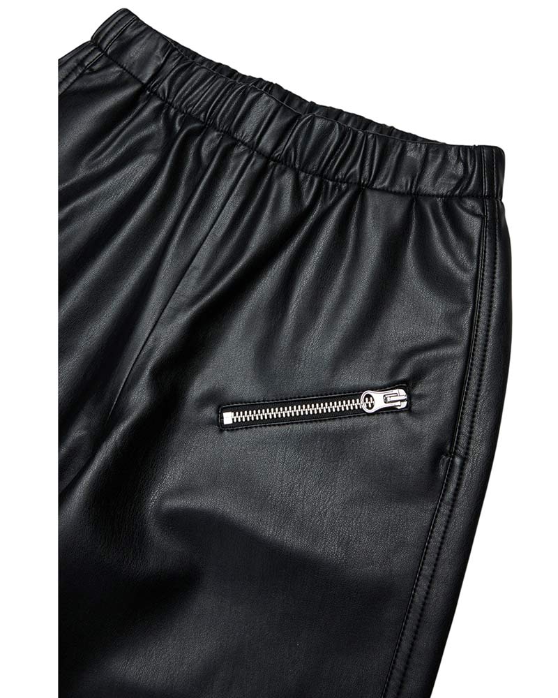 Pantaloni unisex neri realizzati in similpelle. Presentano vita elasticizzata, due tasche a filo laterali, un taschino con zip sul davanti e un taschino a filo sul retro. Sono decorati con Numeric logo ricamato tone on tone sulla parte posteriore.
