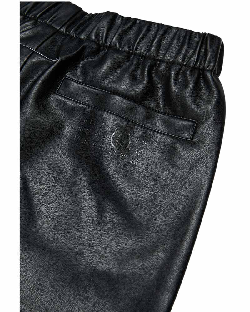 MM6 Maison Margiela Pantaloni in similpelle neri con logo M60837-MM01Y