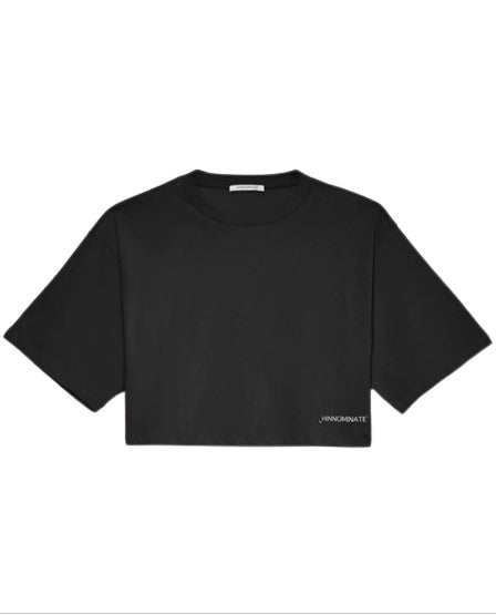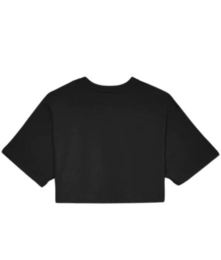 Crop-Over-T-Shirt, Rundhalsausschnitt, S/M, Logo auf der Vorderseite aufgedruckt.