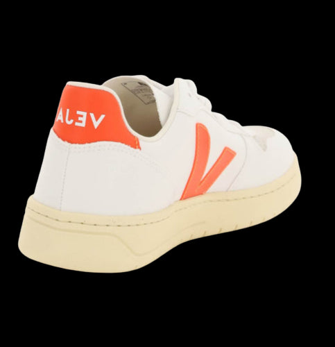 Veja V-10-Sneaker aus CWL-Öko-Leder, Baumwoll-Canvas, überzogen mit organischen und nachhaltigen Materialien.