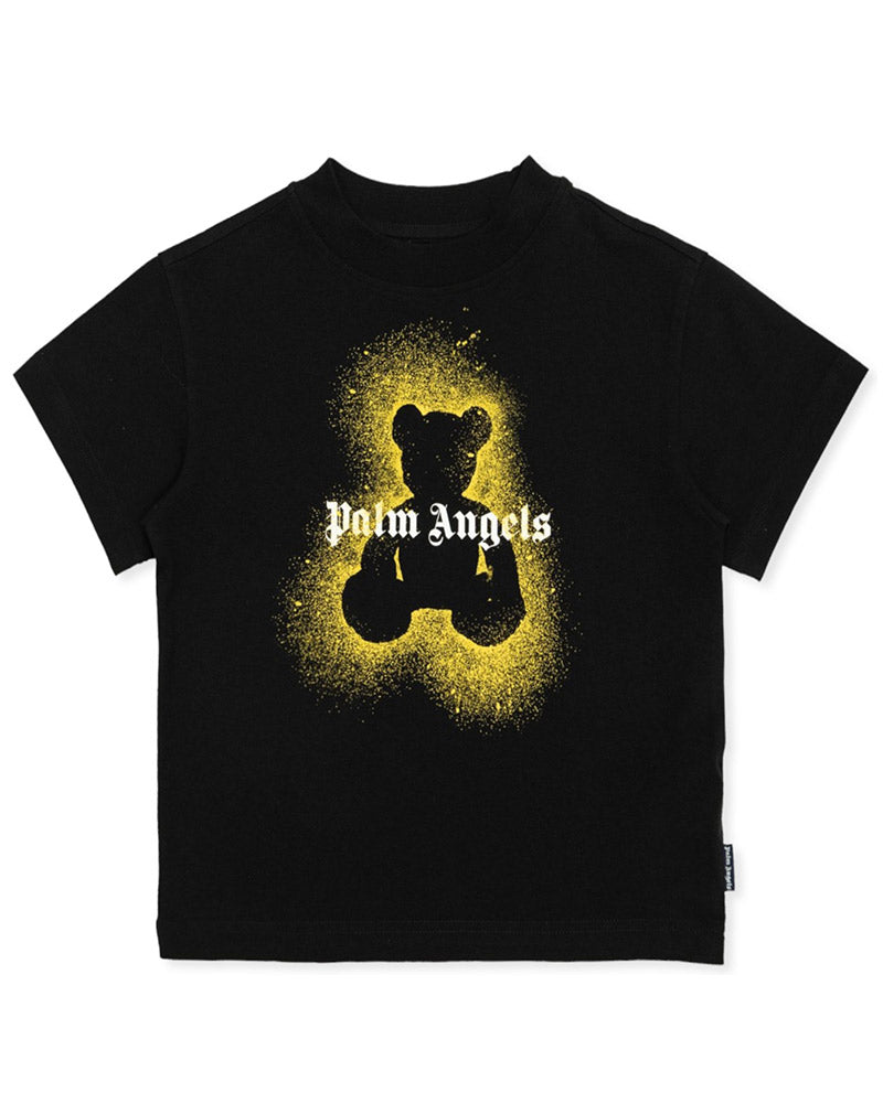 Palm Angels T-shirt nera in jersey con stampa Bear e logo PBAA003F25JER0051016