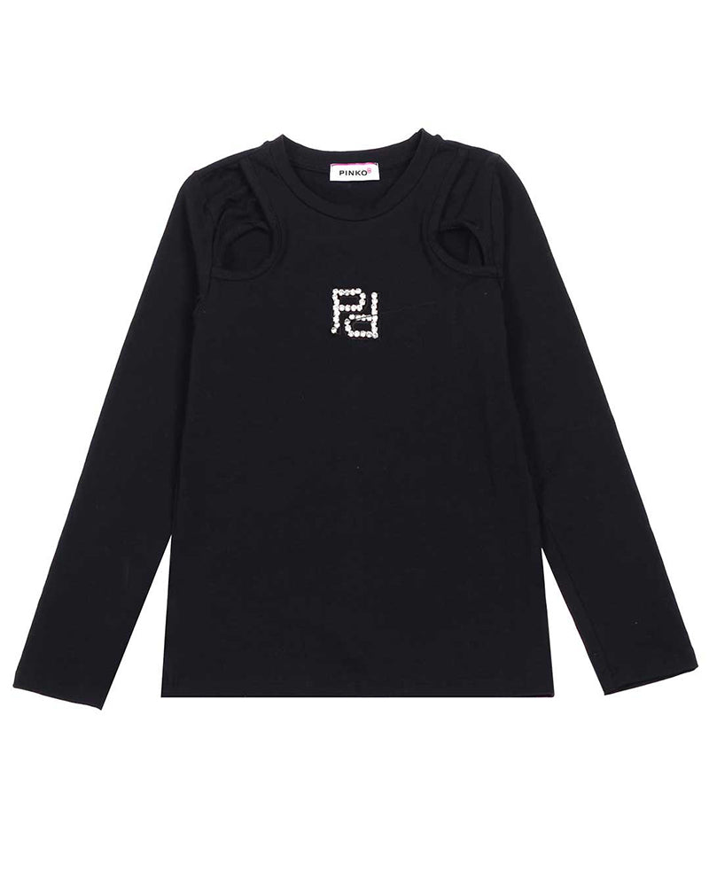 Pinko T-shirt nera a maniche lunghe con strass F4PIJGTH036