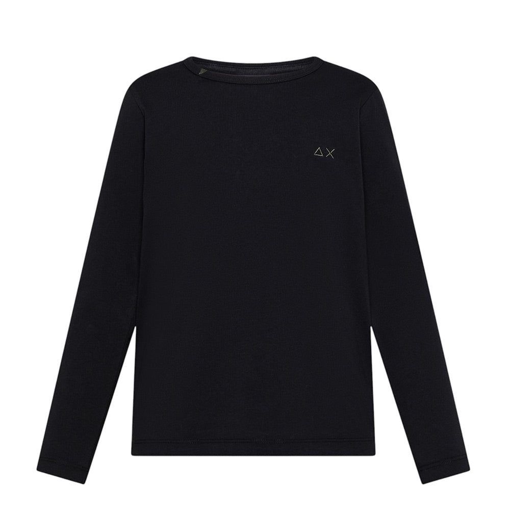 T-shirt realizzata in jersey di cotone, caratterizzata da collo tondo con ricamo, maniche lunghe e orlo dritto. È decorata con logo ricamato sul petto.