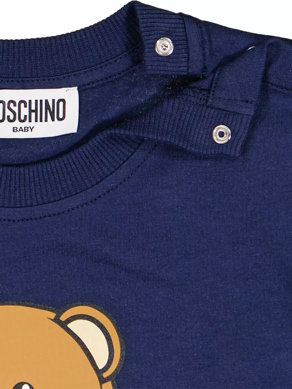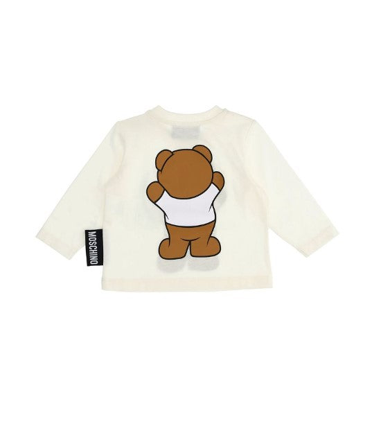 Langärmliges T-Shirt mit Rundhalsausschnitt, ikonischem Aufdruck auf der Vorder- und Rückseite und Druckknopfverschluss an der Schulter.