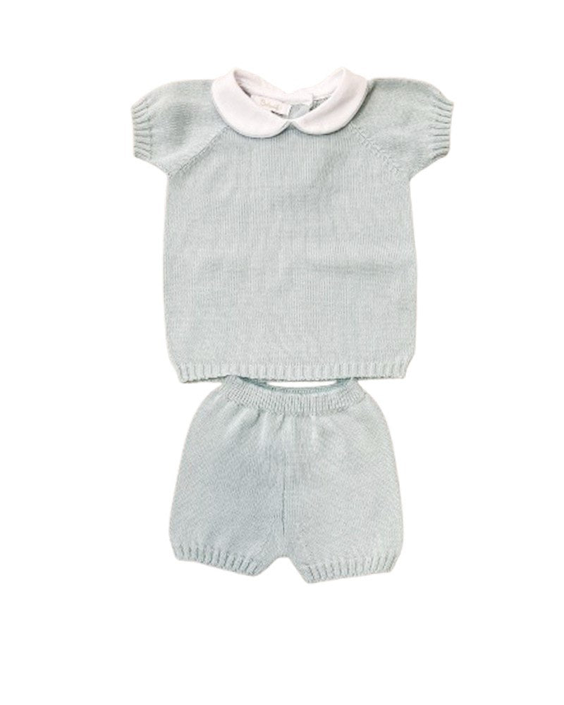 Tutina 2 pezzi in filo con collo tondo e bordino a contrasto pantaloncino a culotta
