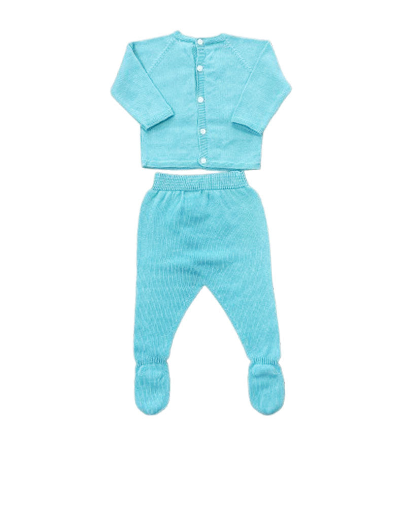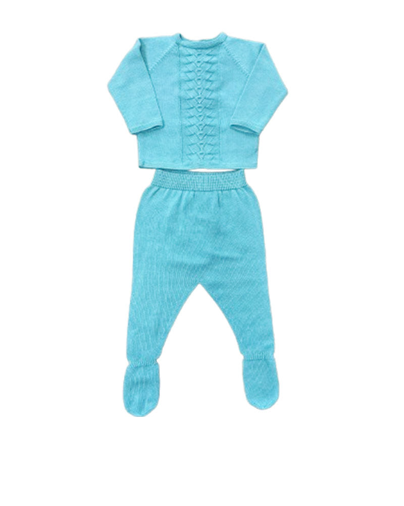 Tutina 2 pezzi in filo manica lunga rombi a e nodini sul davanti pantaloncino a ghetta con piedini