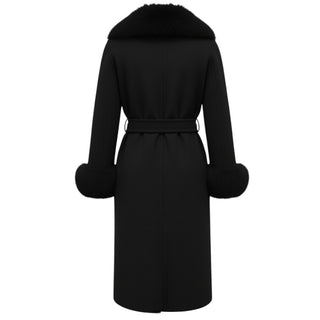 Regina Cappotto nero in cashmere con finitura in vera pelliccia 1200N