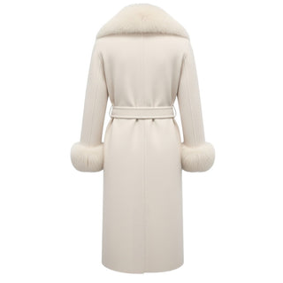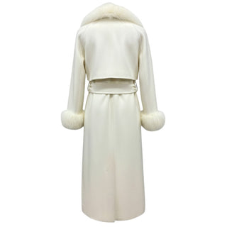 Regina Cappotto avorio in cashmere con finitura in vera pelliccia 1200A