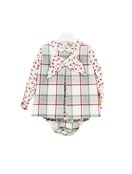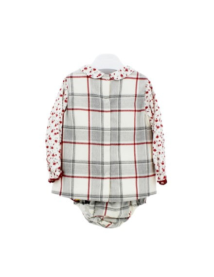 Chua-Kleid mit kariertem Saum und floralen Details. Modell mit passender Culotte.