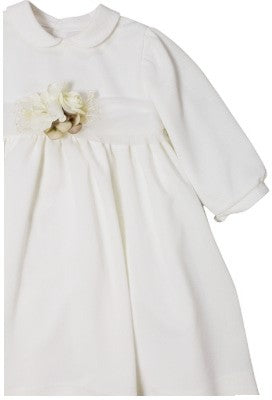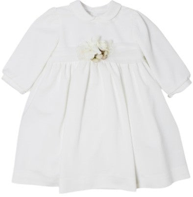 Zeremonienkleid aus Wabenstoff, Rundhalsausschnitt, Taillenband aus Tüll und Blume auf der Vorderseite