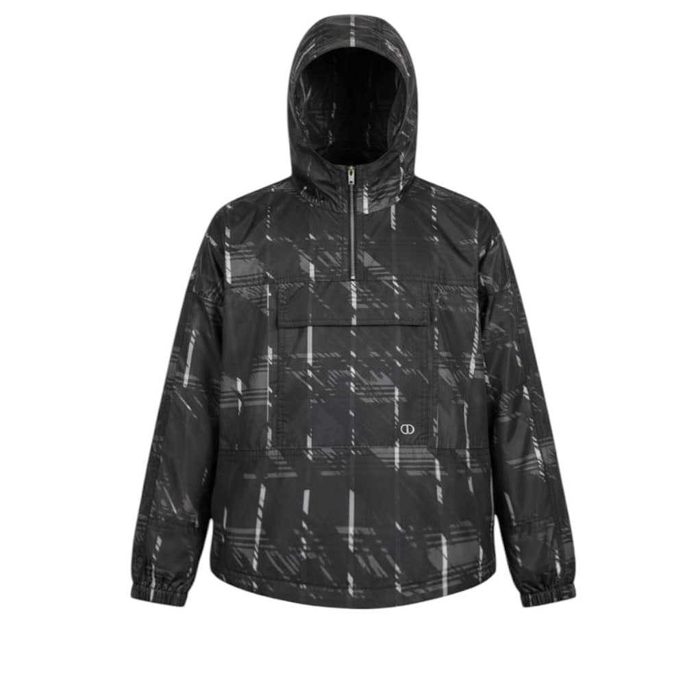 Die Dior-Nylonjacke mit Kapuze und halbem Reißverschluss vorne ist perfekt, um Ihr Kind vor den Elementen zu schützen. Die aufgesetzte Tasche auf der Vorderseite bietet praktischen Stauraum für Kleinigkeiten, während der Allover-Logodruck für einen Hauch von Stil sorgt.