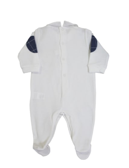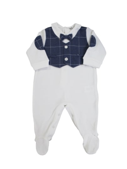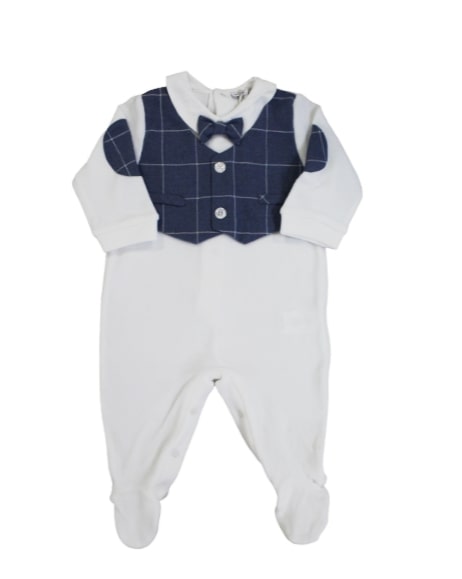 Perdipiù Chenille-Einteiler mit Fake-Weste und Fliege.