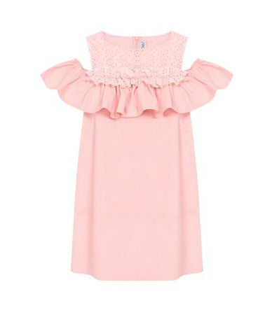 Dieses bezaubernde Kleid mit Rundhalsausschnitt und Armlöchern ist perfekt für kleine Fashionistas! Dieses Kleid besteht aus perforiertem Stoff auf der Vorderseite und ist elegant und bequem. Verleihen Sie Ihrem kleinen Mädchen einen Hauch von Stil mit unserem Simonetta-Rundhalskleid 1K1082-KA010 mit Armlöchern für Mädchen.