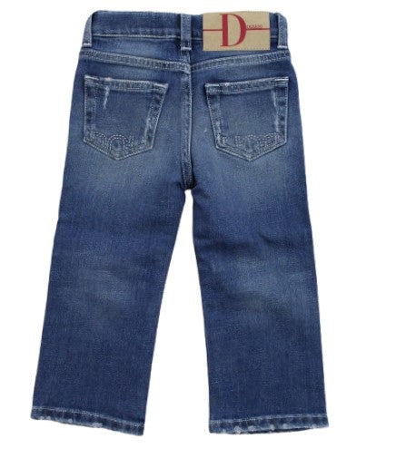Jeans in normaler Passform, runde Taschen vorne, kleine Taschen hinten, Knopf- und Reißverschluss.