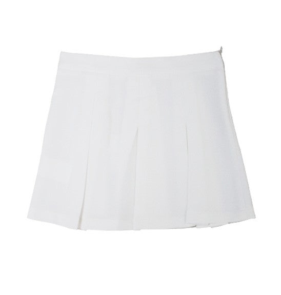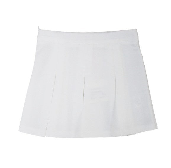 Kurzer Faltenrock für Mädchen, seitlicher Verschluss mit verstecktem Reißverschluss.