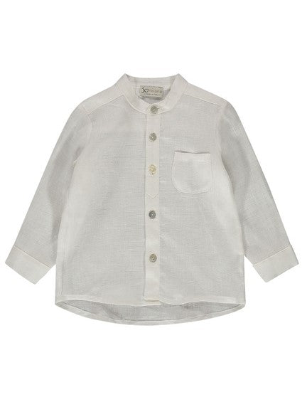 Langärmliges Leinenhemd, Stehkragen, Knopfverschluss vorne.