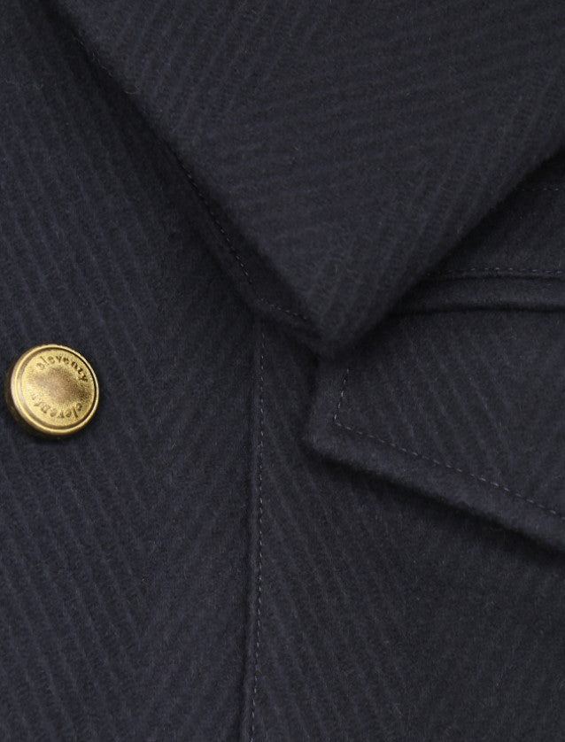Zweireihiger Mantel, Tasche mit Patte und Knopf.