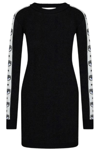 Wollkleid, Rundhalsausschnitt, Symbol auf den Ärmeln gestickt.