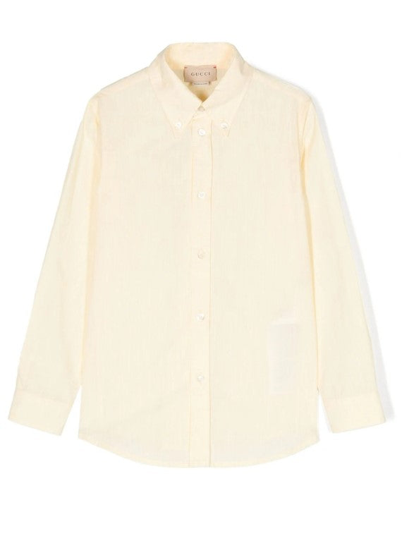 Geknöpftes Jungenhemd aus Baumwolle mit langen Ärmeln, durchgehendem Logo-Stoff und Knopfverschluss vorne.