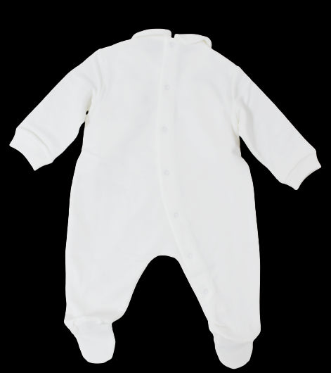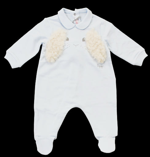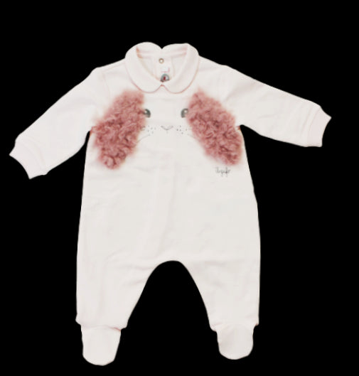 Il Gufo-Einteiler mit 3D-Fleecefell-Detail auf der Brust in Form von Ohren.