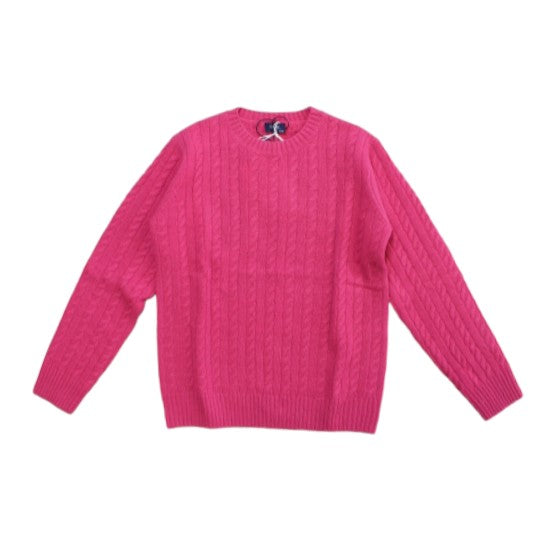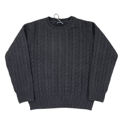 Rundhalspullover aus Wolle mit Zopfmuster.
