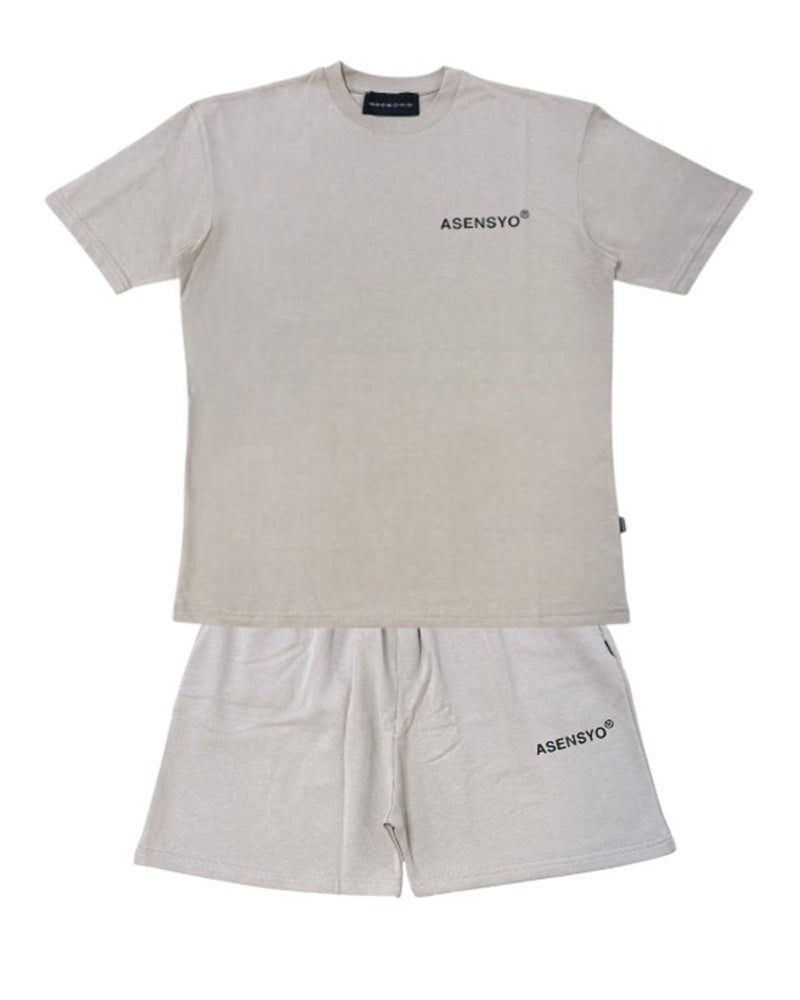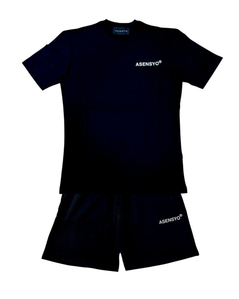 Completo due pezzi realizzato in jersey di cotone da uomo. Presenta t-shirt girocollo a maniche corte con logo stampato sul petto; Bermuda con vita elasticizzata e coulisse, tasche laterali a filo e logo stampato.