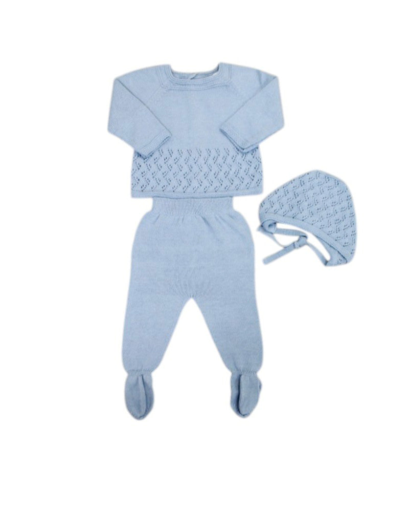 Questo completo in filo a 3 pezzi è l'ideale per chi cerca uno stile elegante ma comodo. Il top con motivo a treccia traforata aggiunge una texture sofisticata, mentre il pantaloncino a ghetta garantisce una vestibilità moderna e confortevole, perfetta per i giorni più caldi. Il completo è arricchito da una cuffietta coordinata, che completa il look con un tocco di dolcezza e praticità. Questo set è perfetto per un outfit casual, ma con dettagli unici che lo rendono speciale e chic, ideale per occasioni informali o giornate di relax.