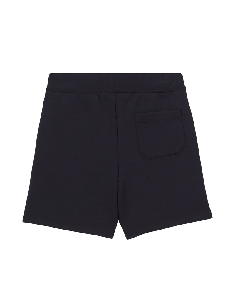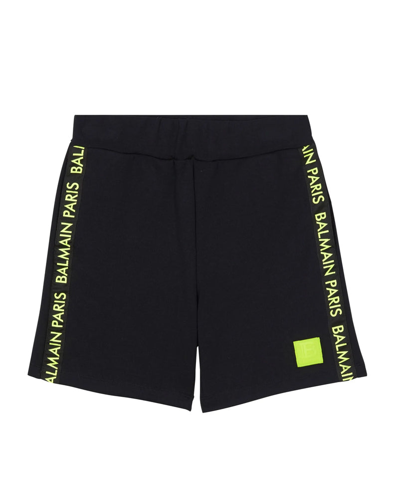 Bermuda nero con applicazioni in contrasto verde neon, design elasticizzato, rifinitura con logo