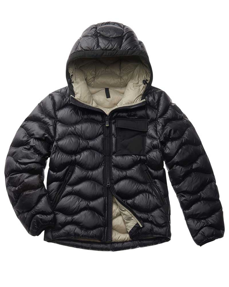 Ton-in-Ton-Taslan-Einsätze am Profil der Kapuze und Reißverschlüssen sowie in der Brusttasche.