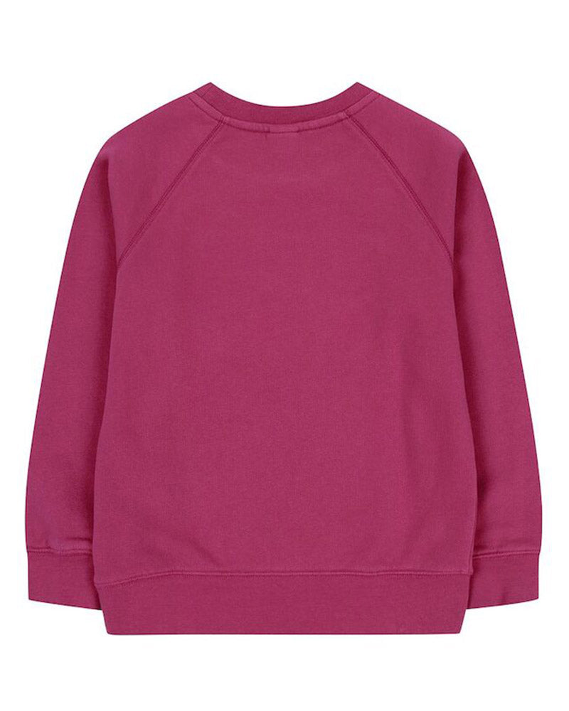 Felpa da bambina realizzata in cotone garzato. Presenta collo tondo, maniche lunghe, fodera in pile e finiture a coste. È decorata con logo in rilievo sulla parte anteriore.