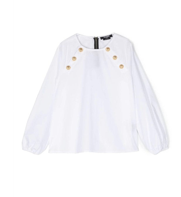 Langärmlige Tunika mit Rundhalsausschnitt, Logo-Knopfapplikation vorne und Reißverschluss hinten.