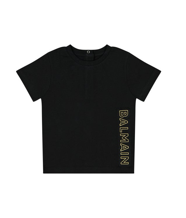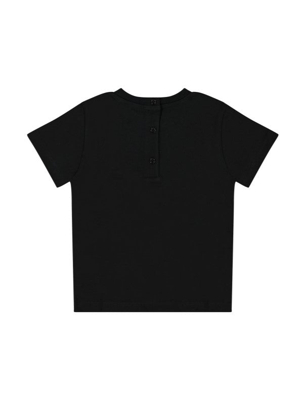 Kurzärmliges T-Shirt mit Rundhalsausschnitt, dreidimensionalem Logo auf der Vorderseite und Clips auf der Rückseite.