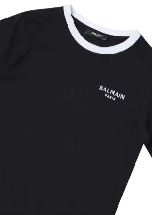 Kurzärmliges T-Shirt mit Rundhalsausschnitt, kontrastierender Mini-Logo-Stickerei auf der Vorderseite und Kragen in Kontrastfarbe.